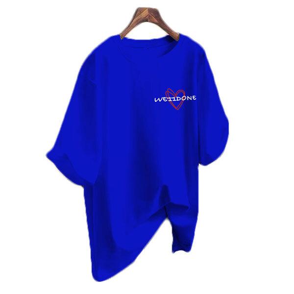 レディース 半袖Tシャツ ハートロゴ コットン素材 通気性 ルーズトップス 五分袖 ビッグシルエット ゆったり カジュアル ストリ...