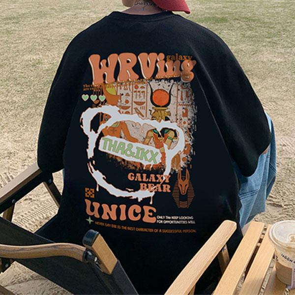 メンズ 英字 五分袖 Tシャツ 半袖 レタープリント 数字 ゆったり ルーズ レトロ ストリート クール お洒落 春 夏