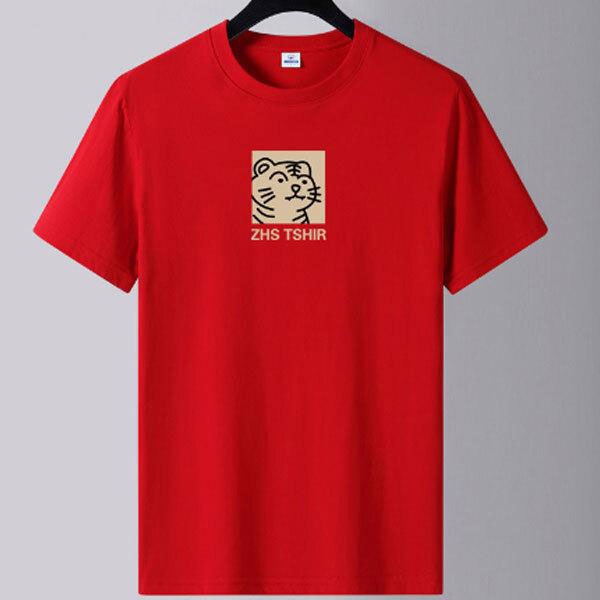 ラウンドネックTシャツ メンズ 半袖 トラのロゴ プリント 手触り良い コットン生地 変形防止 大きいサイズ 春 夏