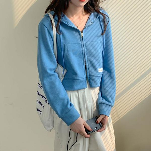 【セール】即納 安い クロップド丈 パーカー レディース 長袖 スウェット トップス アウター ダブルファスナー ポケット付き 着...