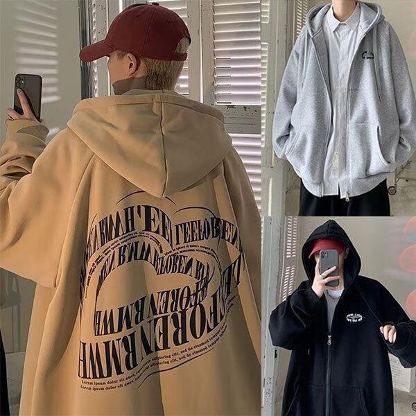 【セール】即納 安い メンズ 英字 バックプリント ロゴ パーカー ジップアップ アウター オーバーサイズ ビッグシルエット カジ...