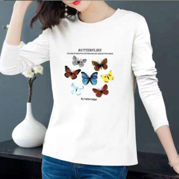 【セール】即納 安い レディース トップス ロングTシャツ 七分袖 リラックス ゆったり 大きいサイズ 蝶プリント バタフライ柄 ...