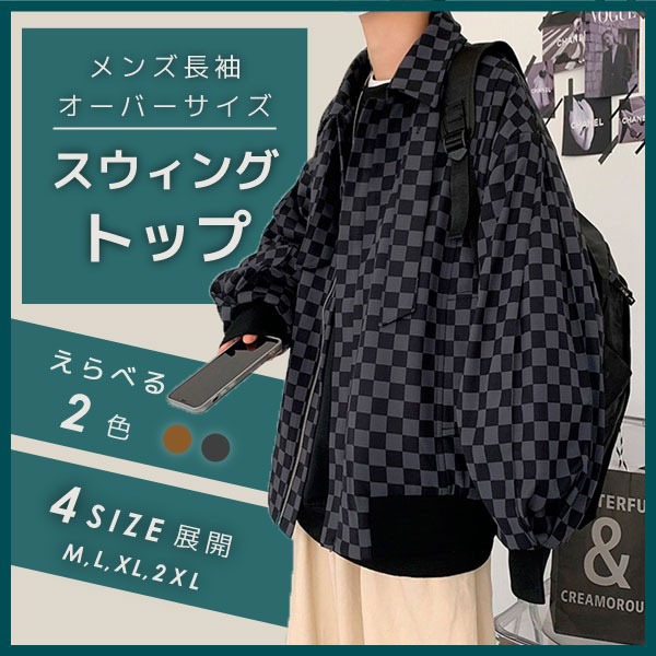 【セール】即納 安い メンズ チェック柄 スウィングトップ ジャケット ジャンバー ブルゾン 長袖 格子柄 オーバーサイズ ゆった...