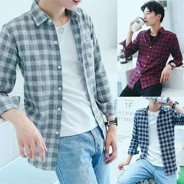 【セール】即納 安い メンズ チェック柄 シャツ 長袖 トップス インナー ライトアウター 定番 オールシーズン カジュアルシャツ...