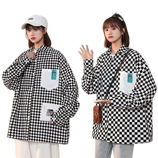 【セール】即納 安い レディース チェッカー柄 シャツ ブラウス 長袖 トップス 胸ポケット オーバーサイズ カジュアル ルーズシ...