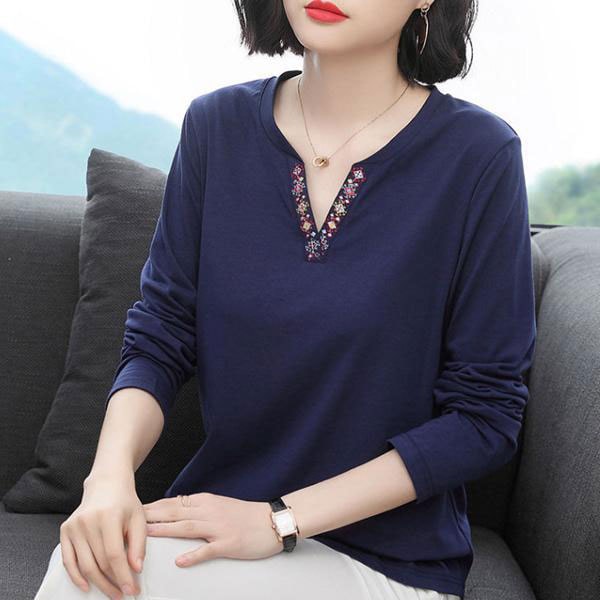 【セール】即納 安い レディース 長袖トップス ロングTシャツ 七分袖 キーネック 刺繍 無地 春秋アイテム 薄手 カットソー ラ...