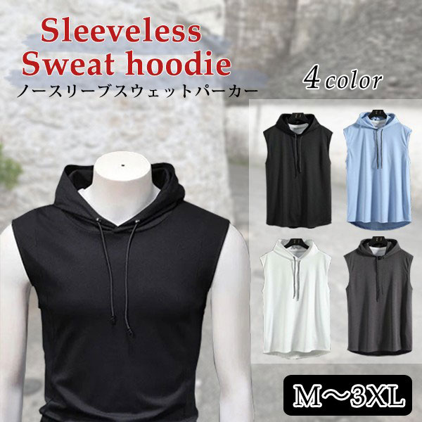 【セール】即納 安い メンズ トップス ノースリーブ フード付き Tシャツ 袖なし スウェット パーカー タンクトップ 大きいサイ...