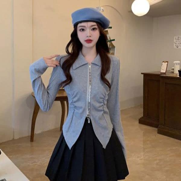【セール】即納 安い レディース サイドギャザー ジップアップシャツ 2カラー 5サイズ サイドギャザー入り 襟付き ジッパー チ...