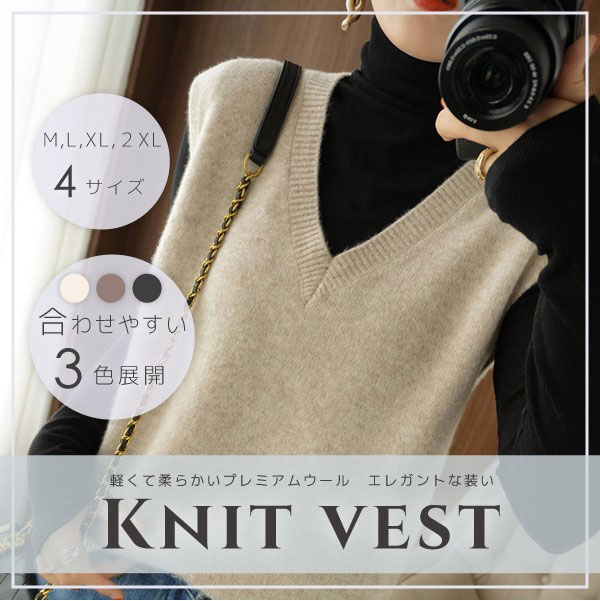 【セール】【即納】 ニットベスト ベスト レディース トップス ノースリーブ vネック 無地 レイヤード ニット セーター 通勤 ...