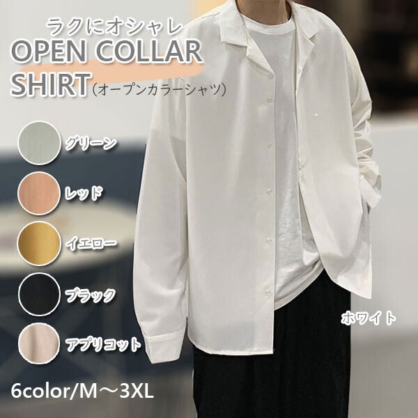 【セール】即納 安い メンズ オープンカラー シャツ 長袖 開襟シャツ 薄手 オーバーサイズ ゆったり カジュアル ファッション ...