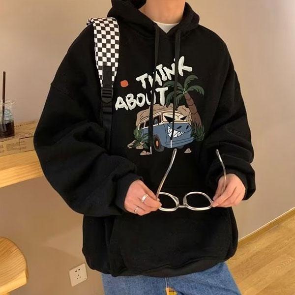 【セール】即納 安い メンズ プリントパーカー スウェット ポンチ プルオーバー 長袖 ゆったり ストリート オーバーサイズ 通気...