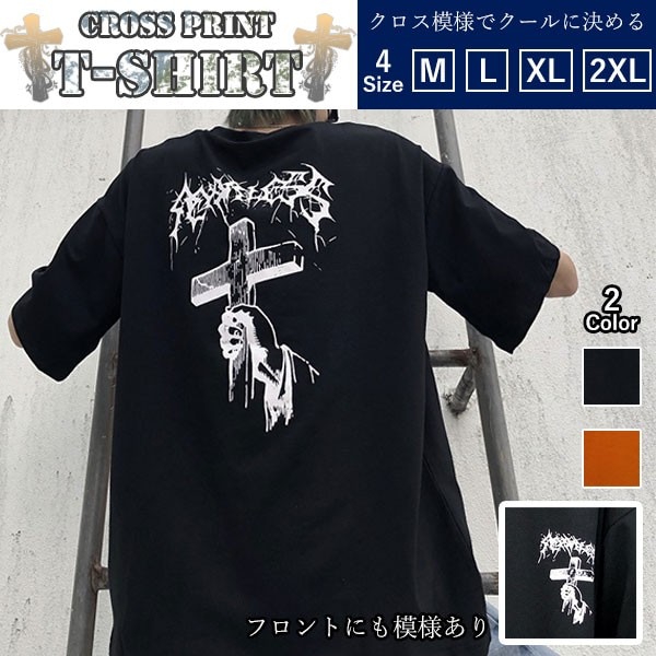 【セール】即納 安い 十字架 メンズ Tシャツ カットソー クロスプリント オーバーサイズ ゆったり ビッグシルエット ストリート...