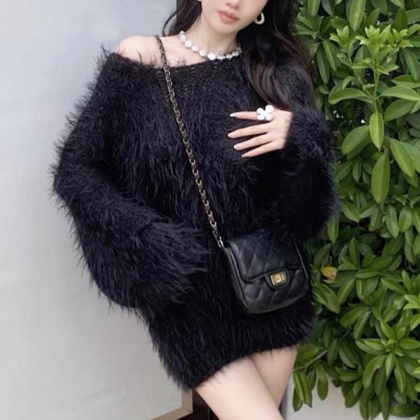 【セール】即納 安い レディース ふんわり シャギーニットセーター 長袖 ゆったりシルエット フリーサイズ 4カラー オフショルダ...