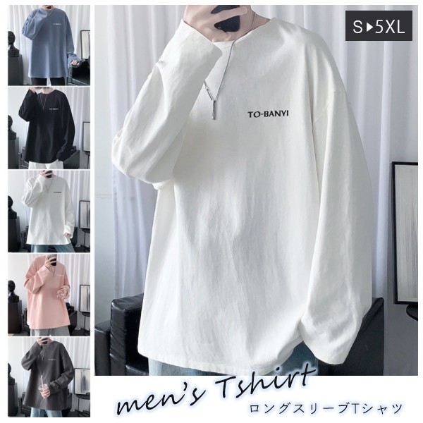 【セール】即納 安い メンズ ロングスリーブTシャツ ビッグシルエット 長袖 ワンポイントロゴ 無地 シンプル ゆったり ユニセッ...