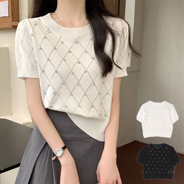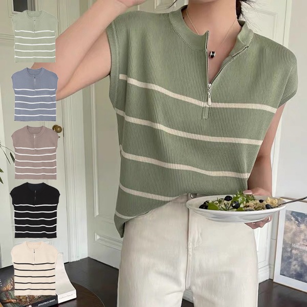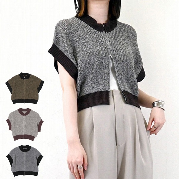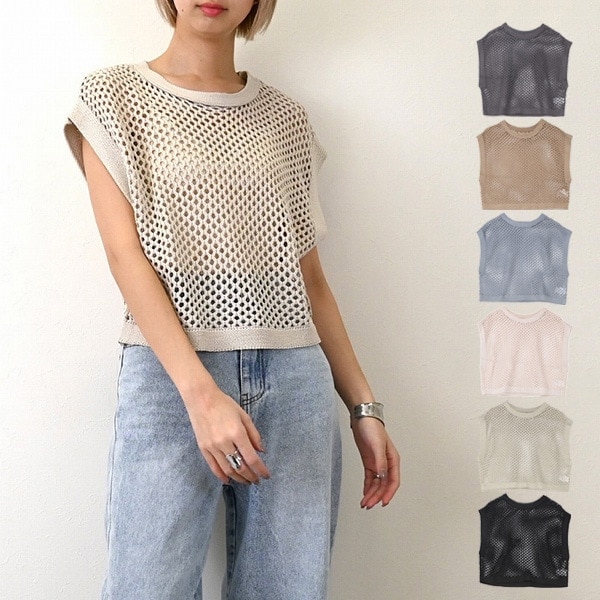 ラメ混ファンシーヤーンノースリーブショートプルオーバー