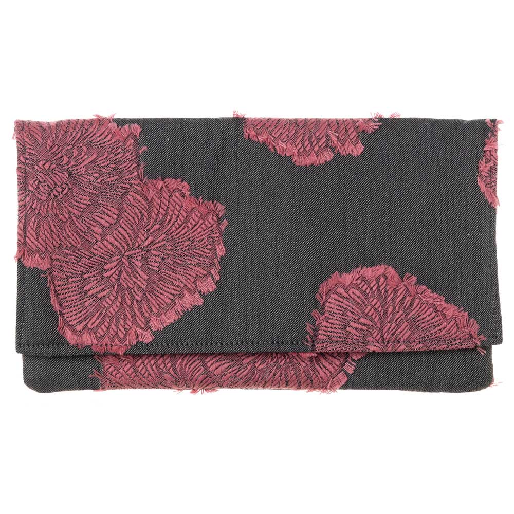 ドレスの端切れを使った懐紙入れ・ドレス懐紙入れ Moipa グレー 花柄ピンク刺繍 洋のフォーマルを和に取り入れた和装小物 懐紙ケ...