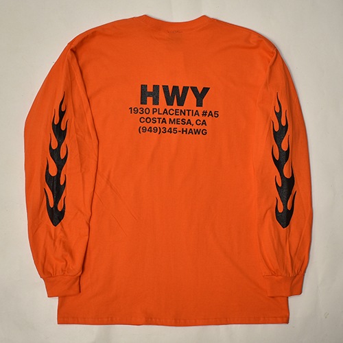 HWY×US/Hawg L/S T-Shirt(エイチダブリューワイ×アス Tシャツ)オレンジ×ブラック [a-7818]