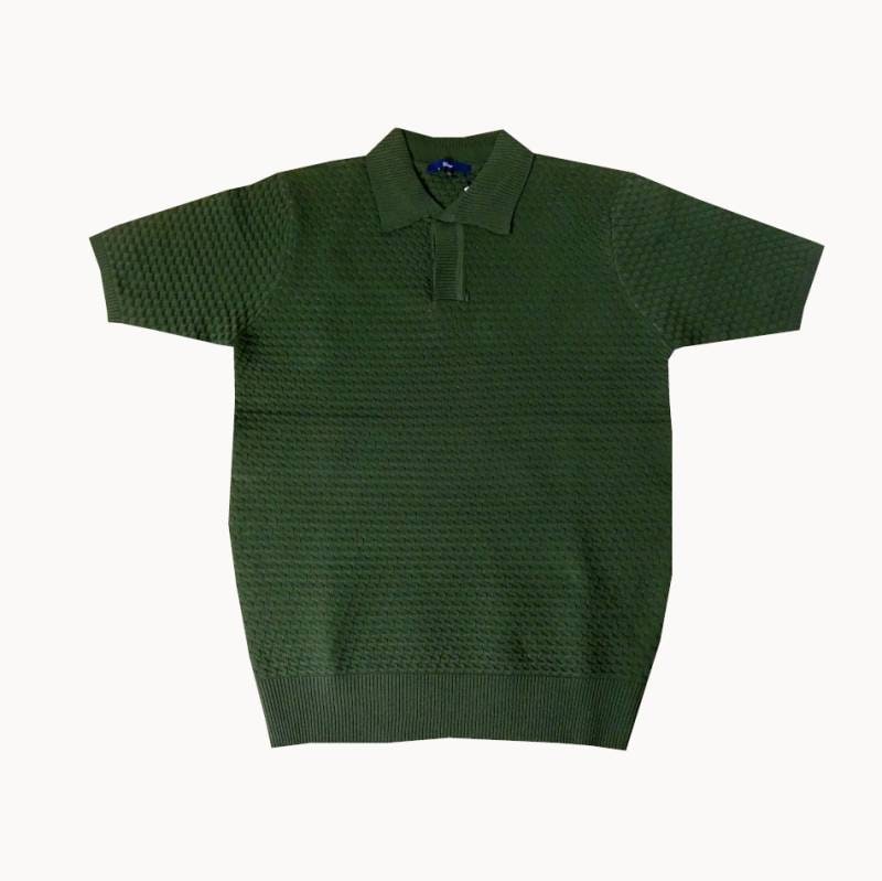 ジーステージ(G-stage) ブリスター半袖 スキッパー ポロシャツ サマーニット グリーン系 4016 M(46)