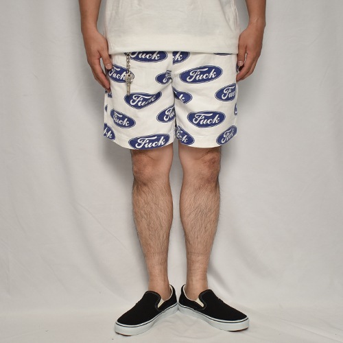 Fuck Logo Easy Short Pants(ファックロゴイージーショートパンツ)ホワイト×ブルー [a-7126]