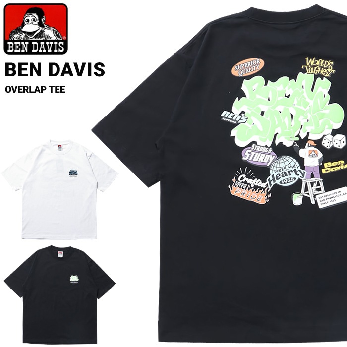 BEN DAVIS ベンデイビス Tシャツ OVERLAP TEE 半袖 カットソー トップス ブラック ホワイト M-XL C-...