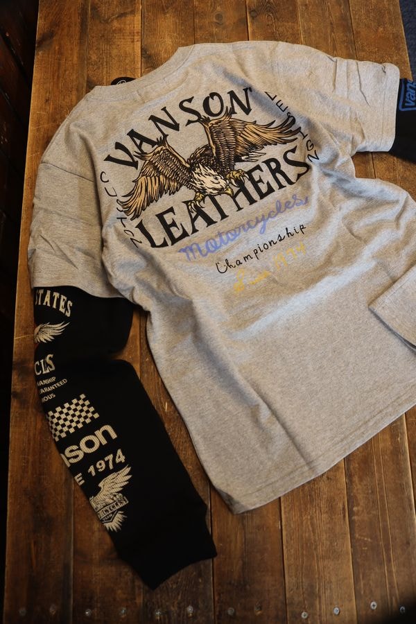 VANSON バンソンNVLT-2409 フェイクロンTee イーグル刺繍長袖Tシャツ