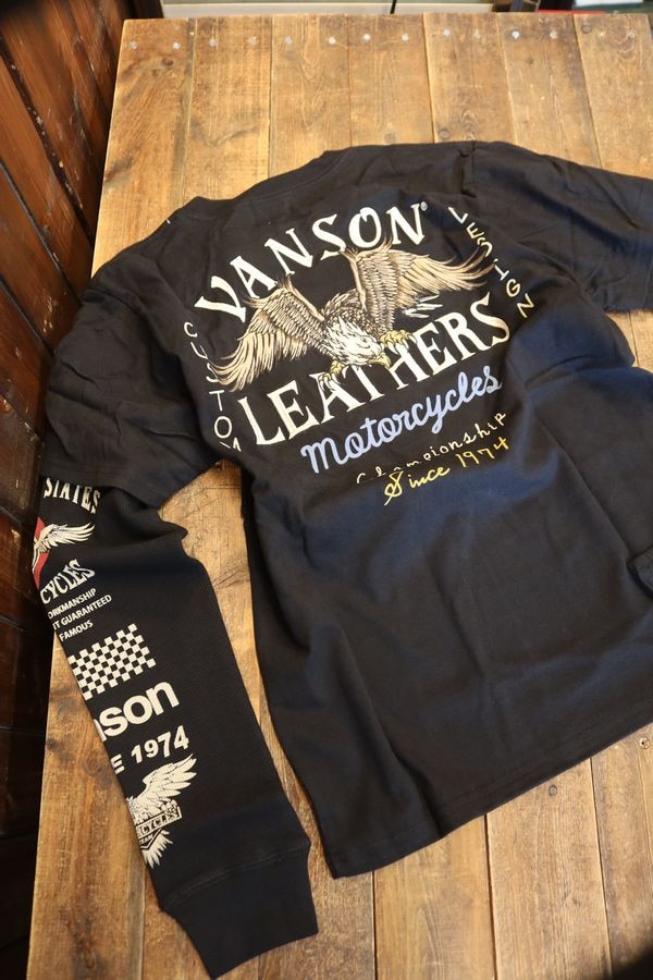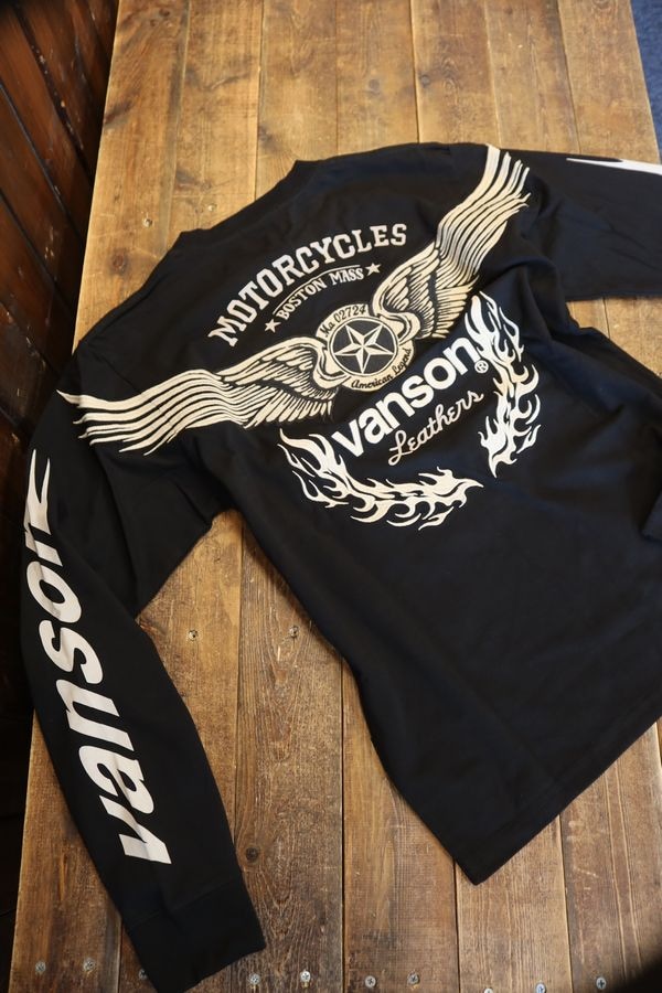 VANSON バンソン NVLT-2420 天竺ロンTee ウイング刺繍長袖Tシャツ ブラック