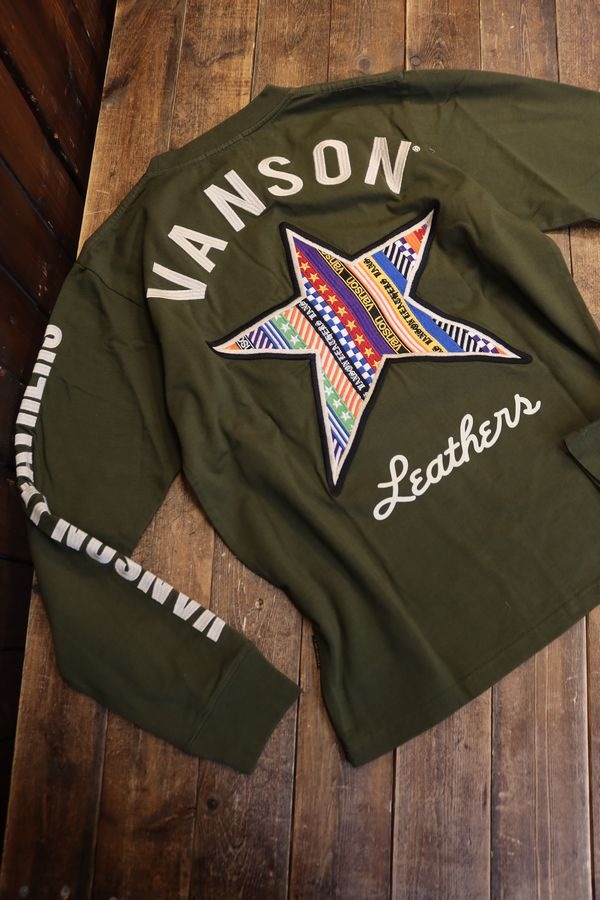 VANSON バンソン NVLT-2501 天竺ロンTee ワンスター刺繍長袖Tシャツ オリーブ