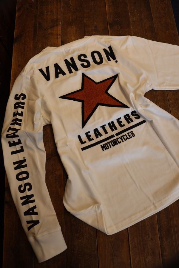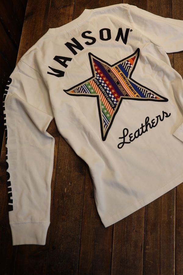 VANSON バンソン NVLT-2508 天竺ロンTee ワンスター刺繍長袖Tシャツ オフホワイト