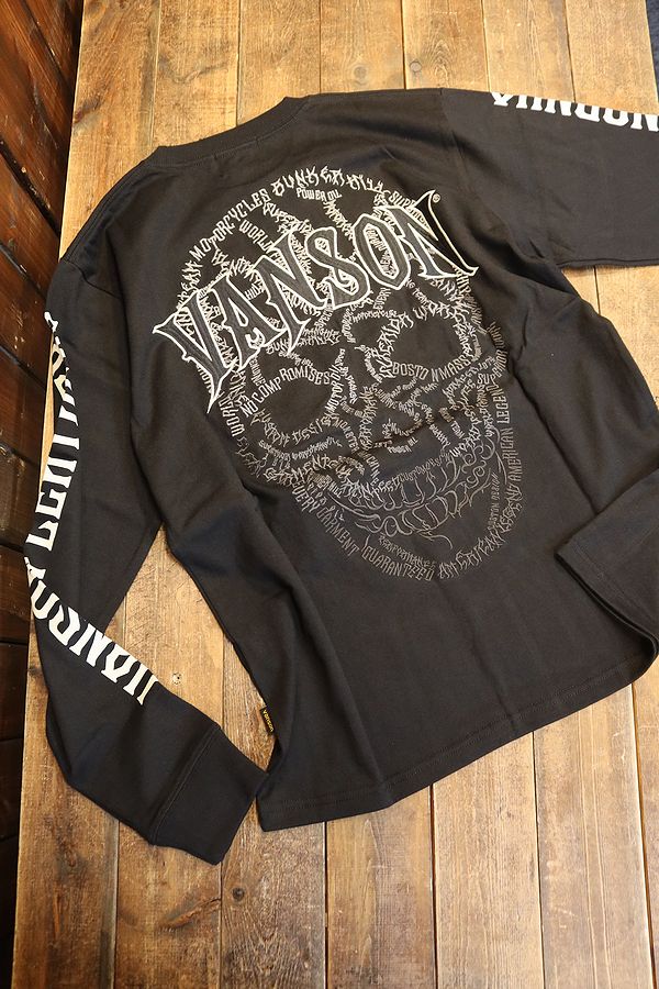 VANSON バンソン NVLT-2503 天竺ロンTee スカル 刺繍長袖Tシャツ ブラック