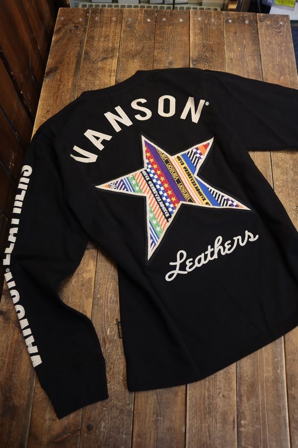 VANSON バンソン NVLT-2501 天竺ロンTee ワンスター刺繍長袖Tシャツ ブラック