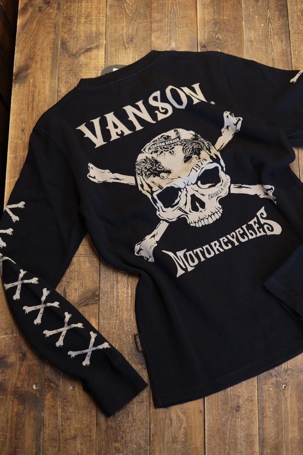 VANSON バンソン NVLT-2408 サーマルロンTee スカル ブラック