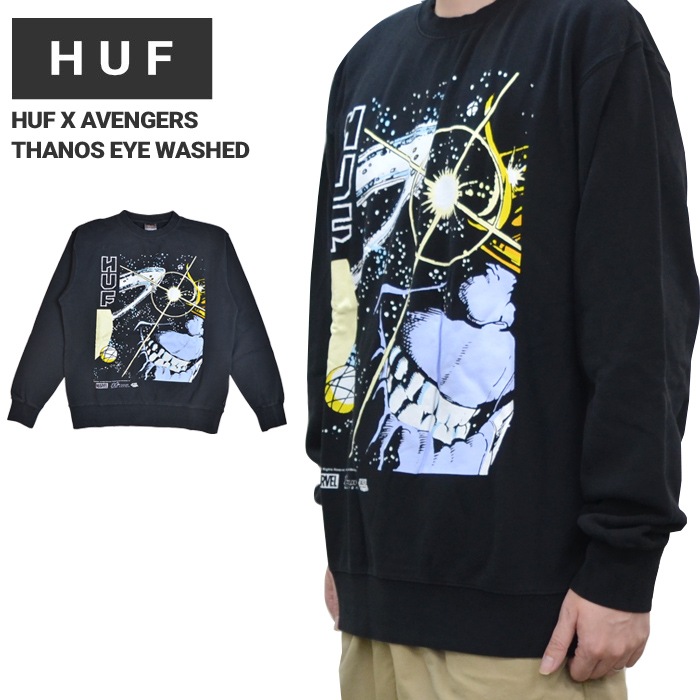 HUF × AVENGERS ハフ × アベンジャーズ スウェット THANOS EYE WASHED CREWNECK フリース...