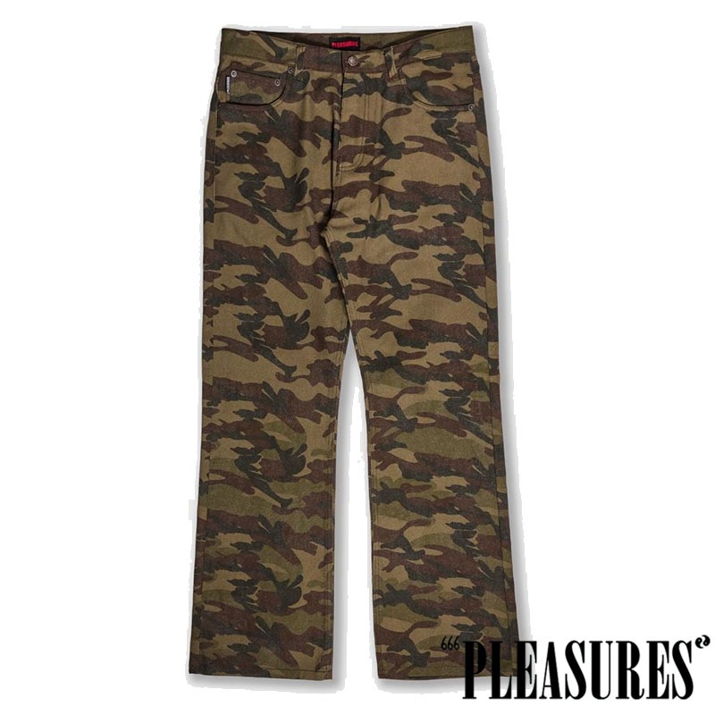 【PLEASURES/プレジャーズ】CAMO FLARE JEANS デニムパンツ / OLIVE