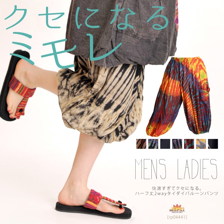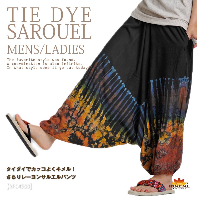 タイダイでカッコよくキメル!さらりレーヨンサルエルパンツ