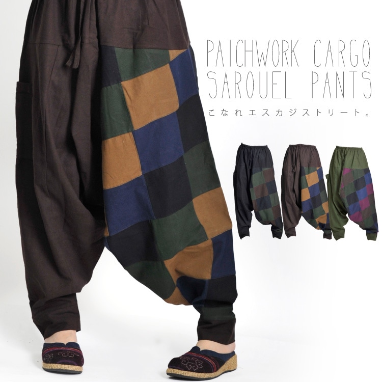 こなれエスカジストリート。パッチワークカーゴサルエルパンツ