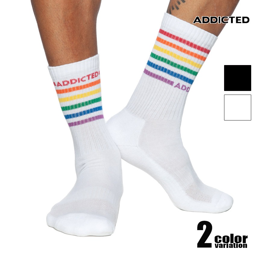 ADDICTED/アディクティッド ADDICTED RAINBOW SOCKS レインボー 6色 膝下 ハイソックス メンズ 靴...