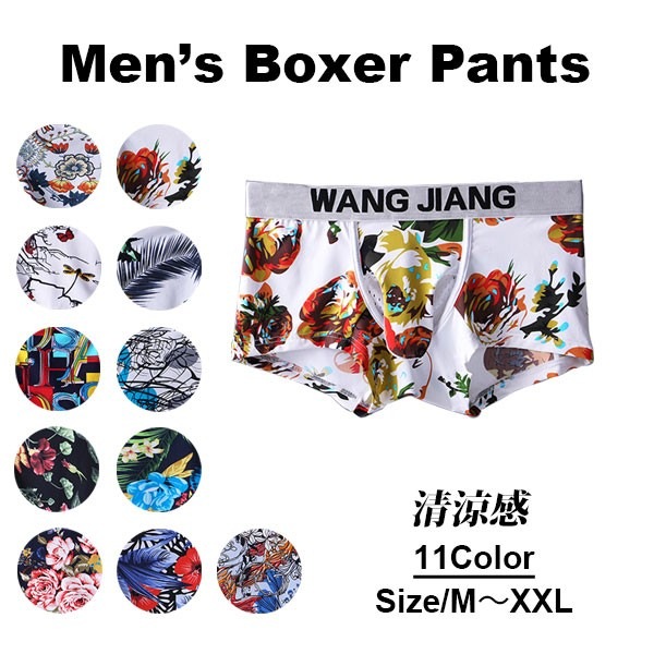 メンズ ポップ グラフィカル ボクサーパンツ 下着 ショーツ プリント アイスシルク ウエストロゴ 肌触り 涼感 吸水性 速乾性 ...