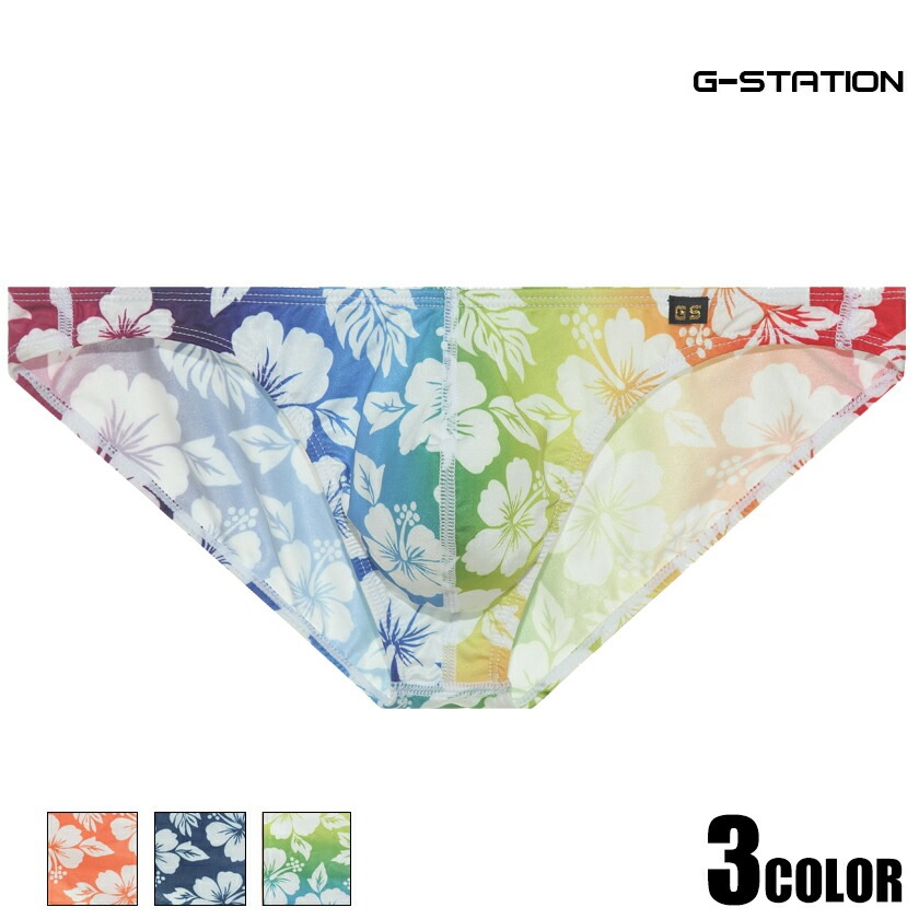 G-Station/ジーステーション ハイビスカスプリント フルバック ビキニブリーフ 男性下着 メンズ タグレス 花柄 フラワー...