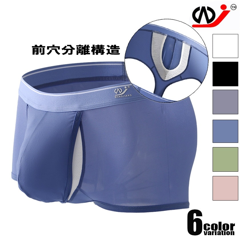ボクサーパンツ メンズ WJ/ダブルジェイ 前穴付き 分離収納 微細メッシュ アイスシルク ボクサーパンツ 男性下着 メンズ パン...