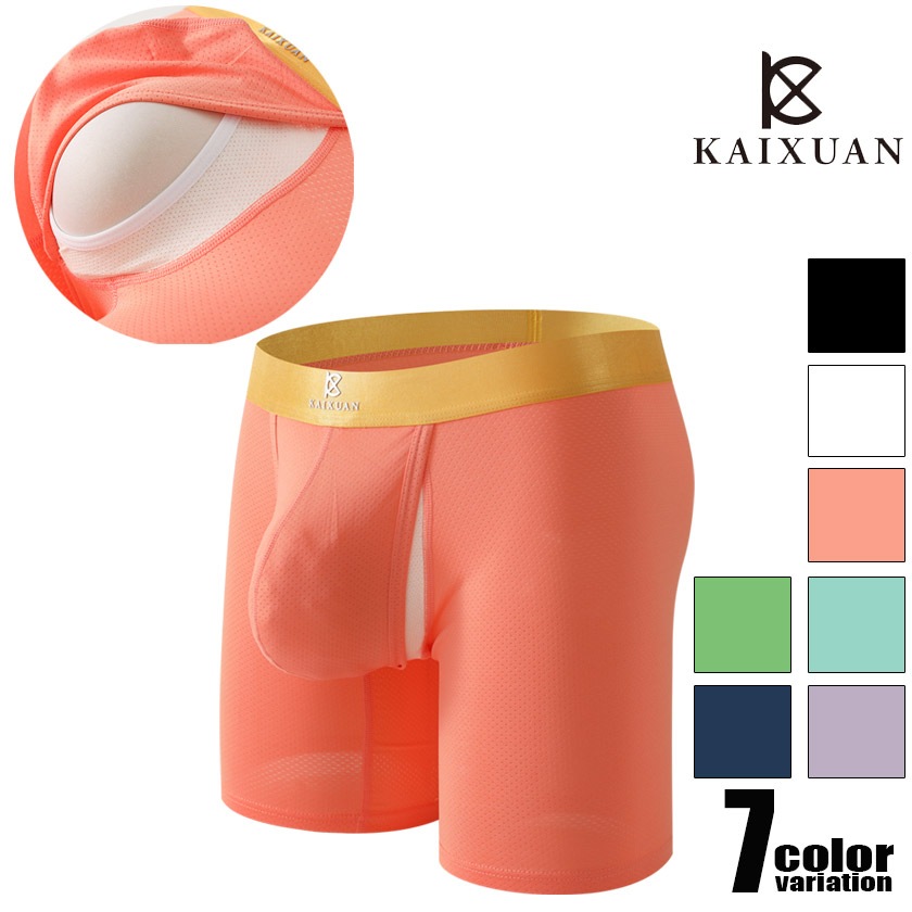 ロングボクサーパンツ KAIXUAN/カイシュエン ツルツルメッシュ ボクサーパンツ フロント両開き フロント立体縫製 男性...