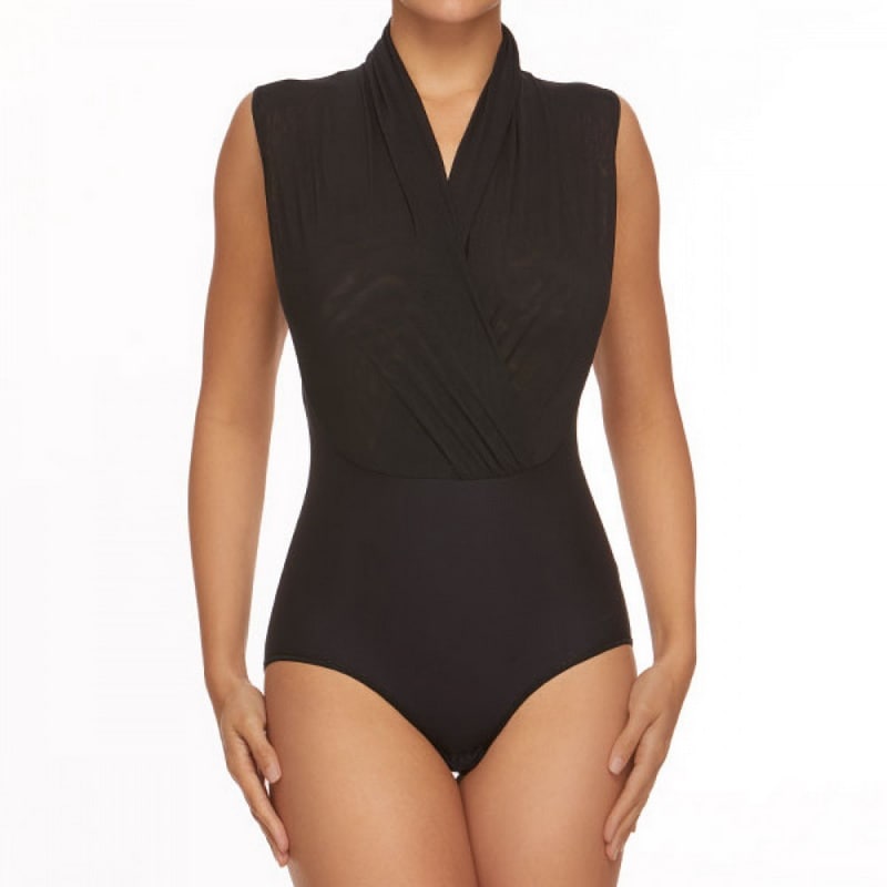 シグニチャー レース タンガ バック ボディースーツ (ブラック)