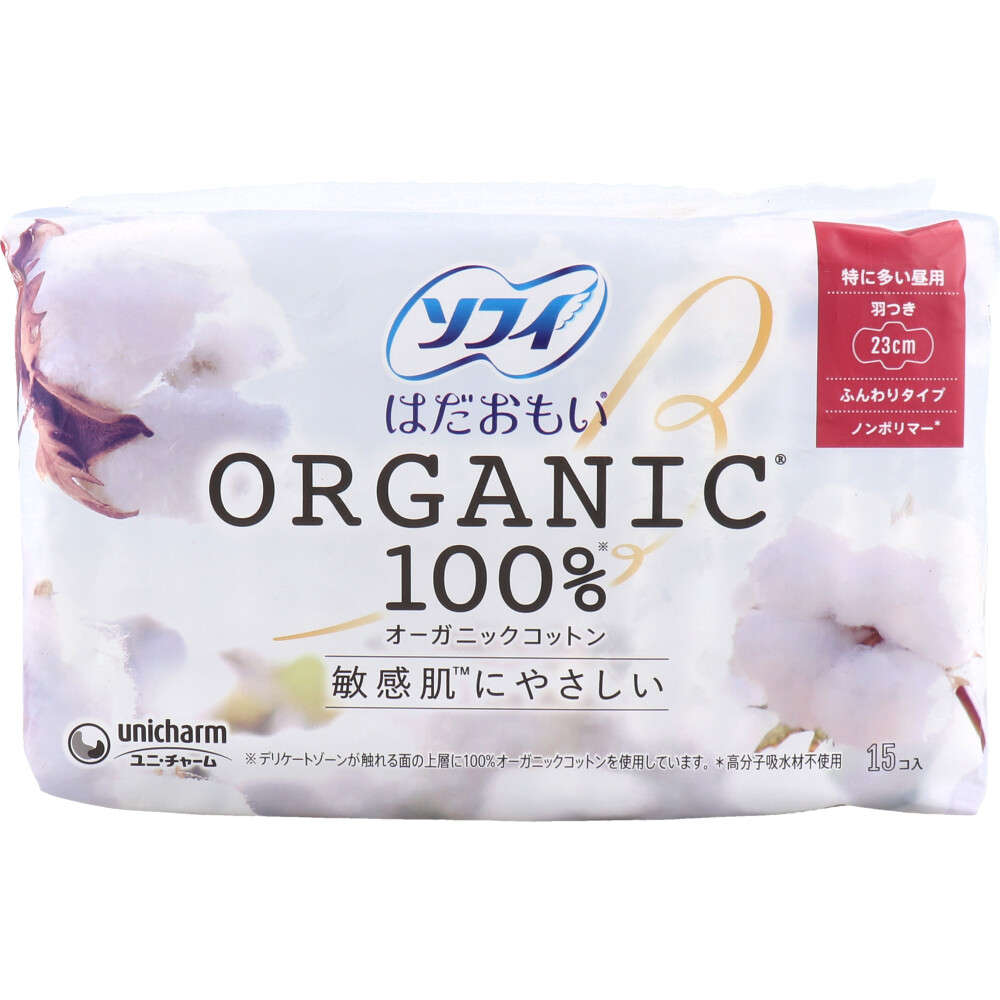 ソフィ はだおもいオーガニックコットン100% 特に多い昼用 羽つき 23cm 15個入