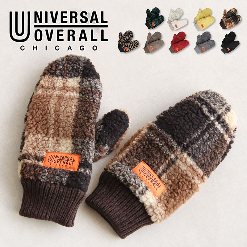 ユニバーサルオーバーオール 手袋 レディース ボア ミトン スマホ対応 冬 防寒 アウトドア 黒 白 チェック柄 t1110 UN...