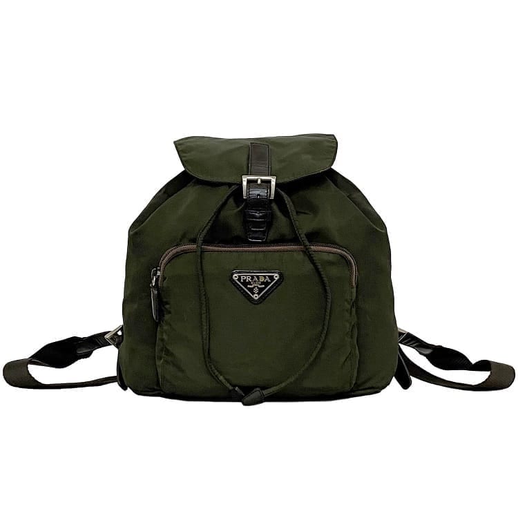 プラダ リュック ec-22627 カーキ テスート 美品 ナイロン 中古 31 PRADA ヴィンテージ 三角 ロゴ プレート ...