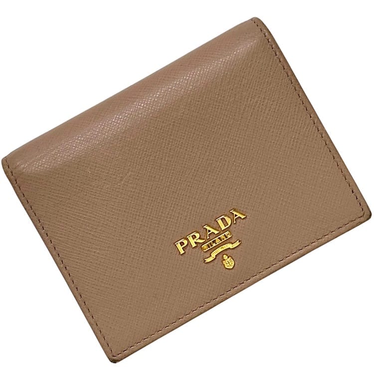 プラダ 二つ折り 財布 ベージュ 1MV204 折り財布 サフィアーノ レザー 中古 62 B PRADA ホック ロゴ 金具 コ...