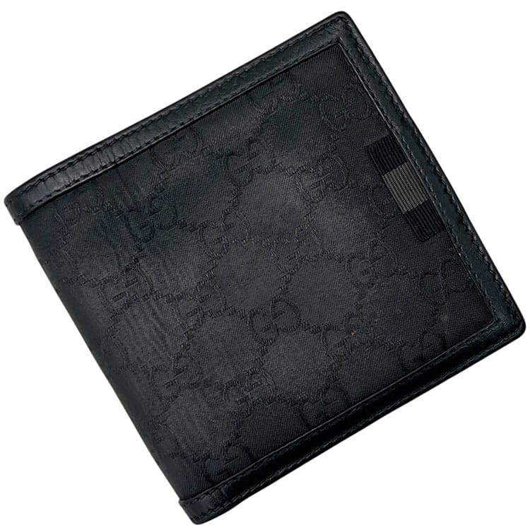 グッチ 二つ折り 財布 ブラック GGナイロン 150413 折り財布 ナイロン レザー 中古 534563 GUCCI リボン ...