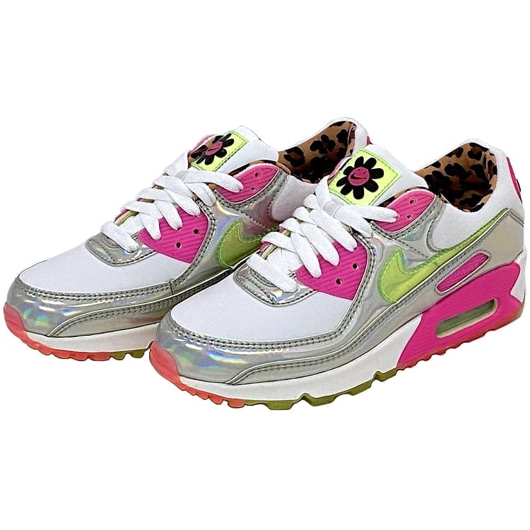 ナイキ スニーカー ウィメンズ エアマックス 90 LX ホログラフィック ec-23379 ホワイト シルバー ピンク レオパー...