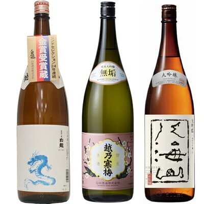 白龍 龍ラベル からくち1800mlと越乃寒梅 無垢 純米大吟醸 1800ml と 八海山 大吟醸 1800ml 日本酒 3本セッ...