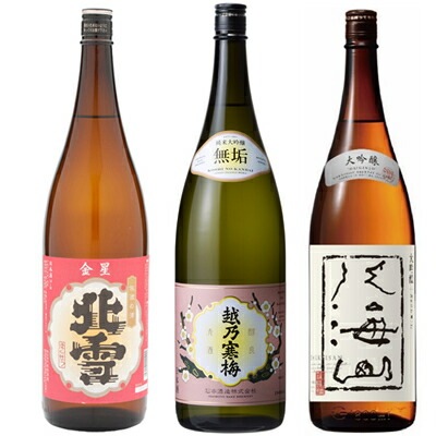 北雪 金星 無糖酒 1800mlと越乃寒梅 無垢 純米大吟醸 1800ml と 八海山 大吟醸 1800ml 日本酒 3本セット