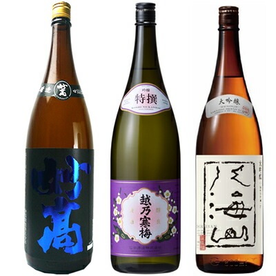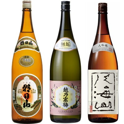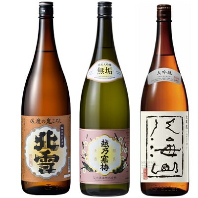 北雪 佐渡の鬼ころし 超大辛口 1800mlと越乃寒梅 無垢 純米大吟醸 1800ml と 八海山 大吟醸 1800ml 日本酒 ...